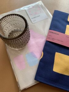 キャンドルホルダー(カステヘルミ・リネン)と手ぬぐいとバンダナをば。。少しですがお皿やマグカップ、タンブラーなどもありました。シアワセな時間。