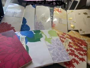 • 便箋・封筒。これはもりだくさんのコレクションを半分以下に断捨離して残した精鋭から選ぼうか。。書き損じも気にならないほど大量にあるので大丈夫。