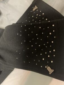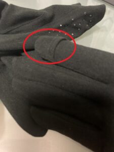4千円台。手触りいいです。ぶらさがっているブランドタグが冷たくてじゃまなのでもぎとりカット。触ると冷たいものは冬の持ち物としてNG、シャットアウトです。