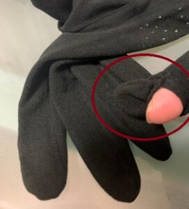 この手袋を選んだのはスマホ対応で人差し指だけが「ひょっこり」出せる仕様になっていること。