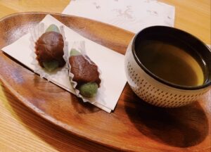 甘味にあわせるのは、「神宗」の塩昆布。緑茶とあわせてまろやか~。ほどよく甘味と合います。
