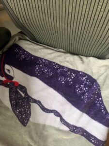 ついていた洗えるカバーを捨てて、雑誌の付録、国芳のくじらのミニブランケットを。あったかいわ~。タイマーが付いているので無駄がない。