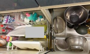 鍋類や調味料のスペースは着手・対応済み。この日手を付けたのはシンク下の2つの深い引き出しです。