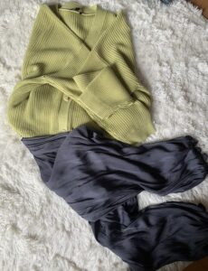 通院先で見かけた、おそらくイッセイミヤケのグレーの上下を着たマダムがかっこよかったので、、帰ってきてちくちく縫って似た感じにリメイクしてみました。裾が広がっているよりも足さばきがよくて、今までより着用機会が増えそう。