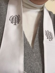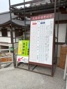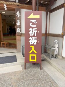そしていよいよ、夫の本厄の厄祓いの申し込みへ。たすき(↓写真)を首にかけて待合の広間へ。