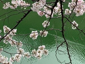 お堀にしだれる桜がいいですね。少しずつ散り始める桜の花びらを受け取ったり手放したりして桜のトンネルを歩きます。なんとここちのよい時間だろう。