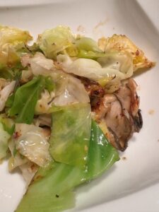 しかしここは実母直伝の(手軽に私でもできる)、バターでキャベツと牡蠣をソテーして、