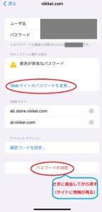 例では、一覧から「日経ID」を選んで、WEBサイトにアクセスし、パスワードを変えて戻ると「更新されました!」といった表示がでます。これで一件落着。