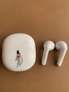 今もってるオーディオテクニカのは、耳の中にぐっと入れ込むタイプ。ちょっと圧迫感があって実はあまり使ってなくて、有線のイヤホンを使うことの方が多い、そして絡まってる(笑)。普段用にソフトに耳にかけるタイプが欲しい。