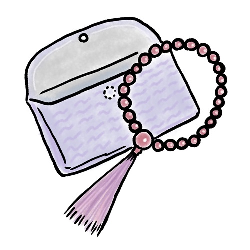 黒のスーツ、ネクタイ、靴下、靴。数珠、ハンカチ、不祝儀袋、ワイシャツと下着、2,3日分の着替え