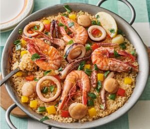 肉食をやめてるのでお魚系…、「パエリアセット」を婦人画報で。下の画像は公式(←)よりお借りしました。