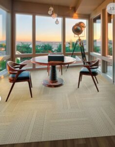 ↓ 実際の施工(敷くだけですが)右側にまだカウンターが鎮座しているので窓側に寄せて、と。