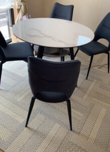 DINOSで今回買った上の写真にもある白い面のセラミックの円テーブル。