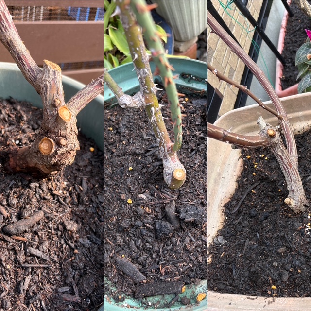 そして、セオリー通り(にできてのは何年振りだろうか…涙)、つるバラの2つの大鉢の剪定と誘引を年内に済ませることができました。