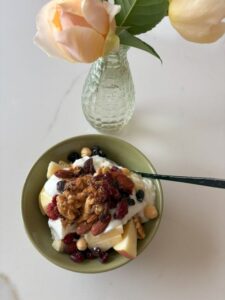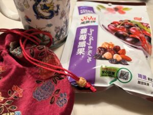 右のドライフルーツとナッツ。これは朝食のヨーグルトとともにいただきます。