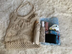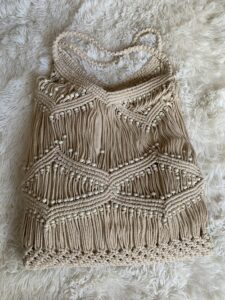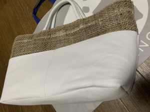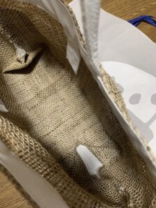 麻系のほっこりした雑貨を扱う幡inoue(ばんいのうえ)、2022夏に店舗で購入。8千円くらいだったか、マチのある、腕を通すこともできるバッグ。