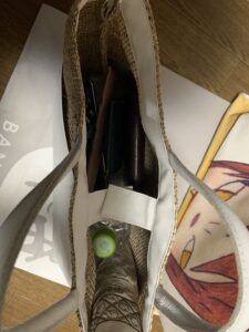 もともとはスマホとハンカチだけを入れた小さいものが好みなのですが、こう暑いと日傘やペットボトルのお水も入れて出かけないとえらいことになってしまう。
