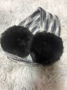 駐車場とスーパーの間の吹きすさぶ風対策に、ダウンを着こんで、このところ「耳あて」が活躍しています。