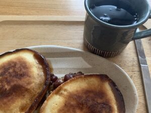 ↑少し焦げましたがホットケーキミックスに十勝産の餡子をはさんで黒蜜で。おいしゅうなりました。