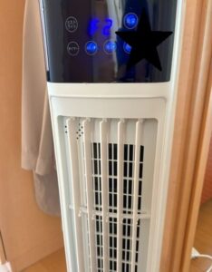 お水を入れているタンクの中に、凍らせたボトル(これもついてます)を入れることでひえひえ冷風になるので、朝おきてきたら凍らせたボトルを入れてスイッチオン!の習慣で快適になりそうです。夫が出勤後にスイッチオフっと。