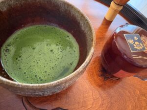 紅茶でも緑茶でもほうじ茶でもいいし、自分で飲むのでお点前も何もない抹茶、おいしい。 初回はダマが残ってしまったけれど、回を重ねるにつれて美味しく点てられているような、気がする。ラフでええんよ。