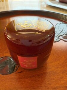 最後の初釜の時だったか、先生からいただいた棗(なつめ)をずっと着物をしまう箪笥の小物入れにしまっておいていたのですが、先日一保堂本店で久しぶりにお抹茶を買ったことから、懐かしの棗もだしてきました。