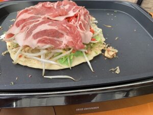最近はウッドデッキで過ごす休日のランチで「広島焼」に挑戦。この仕上がり!粉もん!