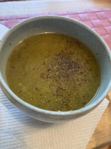 ↓ AFTER。ポタージュ状になったところにブラックペッパーあるいはヒハツを加えます。