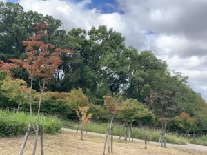 ほんの少しだけ紅葉しかかってた(↓)。これから徐々に秋に染まっていく大阪城公園をみれる機会に恵まれてうれしい。大阪城公園の紅葉の見ごろは11月中旬。NHK大阪が近いし、朝ドラ出演俳優の誰か走ってないかな、なんて。いらしてもわからないけども。