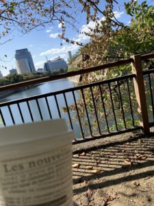 私もお堀のそばでカフェタイムしてみました。いつまでも座っていられる感じする。。
