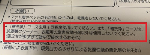 乾燥フィルター以外の場所にもたまってる(こびりついてる)ほこりを除去するのに、槽洗浄は月に1回くらいの頻度でされることをおススメします。とのことです。