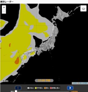 うぎゃー、時間をスライドしてせまりくる黄砂の様子がみてとれる。みてるだけで眼がむずむず・むずがゆい。