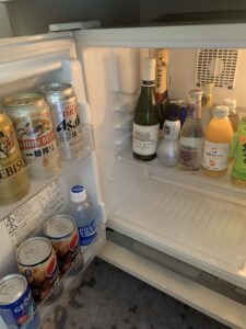 冷蔵庫内はオール有料。下の空いてる段に2本ほどお水のボトルを入れて冷やしてました。
