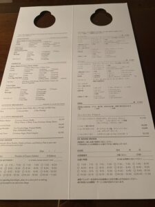 ターンダウンの時に置いていってくださってる用紙をまじまじとみて、和食一択。