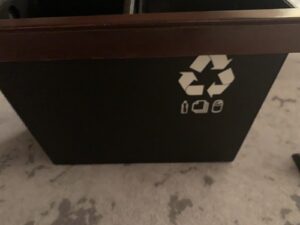 チェックアウト前に、ゴミ箱の分別の最終確認っと。スマートに宿泊できたかな。。