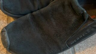 長年のお付き合い。気に入ったものは劣化しても再び買いなおす~。メレルの靴に黒のストール。そしてイヤホンのチップを探して。